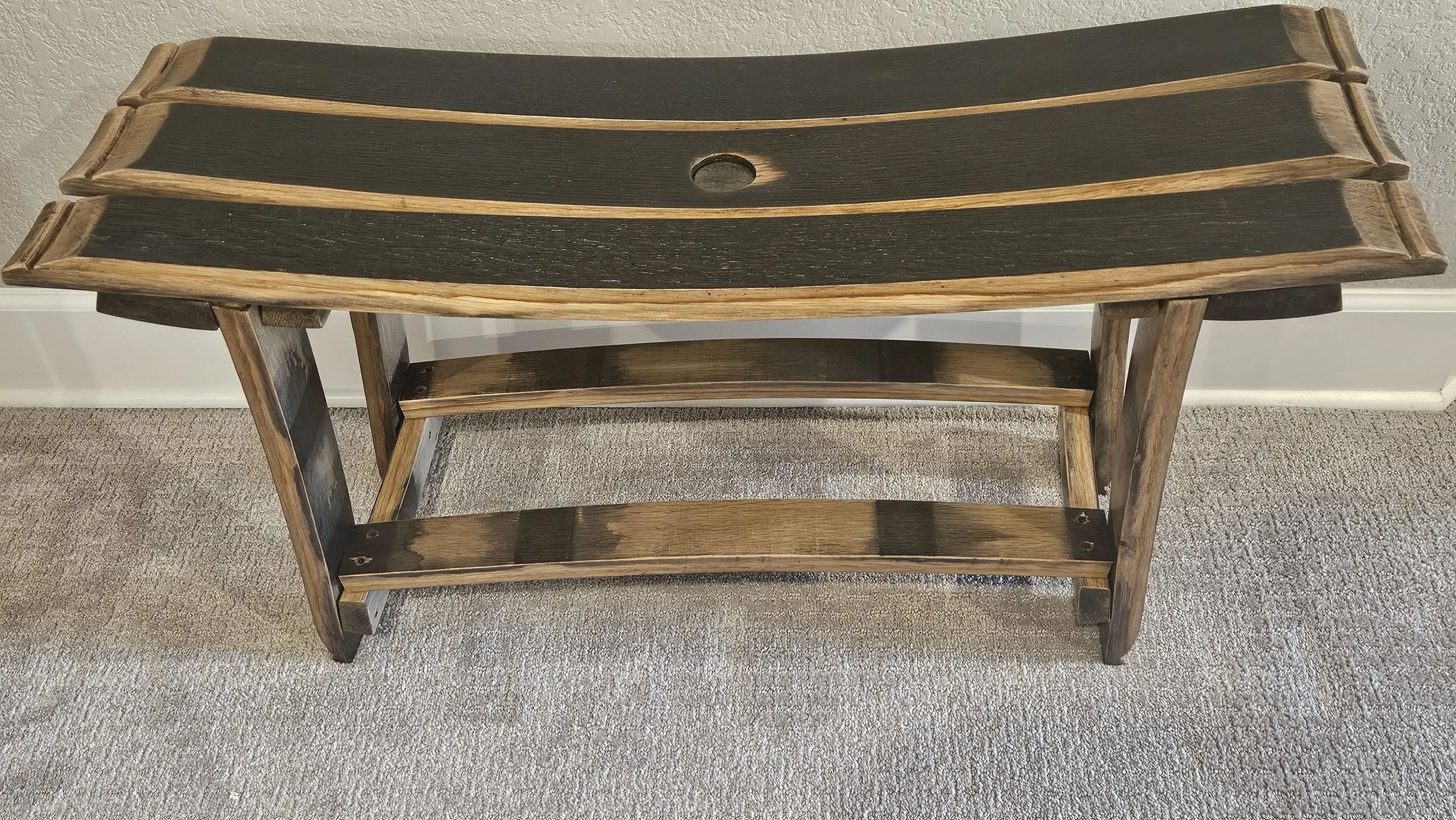 Benches of various dimensions are skillfully crafted using bourbon barrel staves, resulting in a unique and stylish design. They are designed in both concave and convex styles, offering aesthetic appeal. These indoor benches serve as perfect additions to your front door area or mudroom, providing a convenient place to take off footwear. Moreover, they can enhance the ambiance of any casual room setting.
