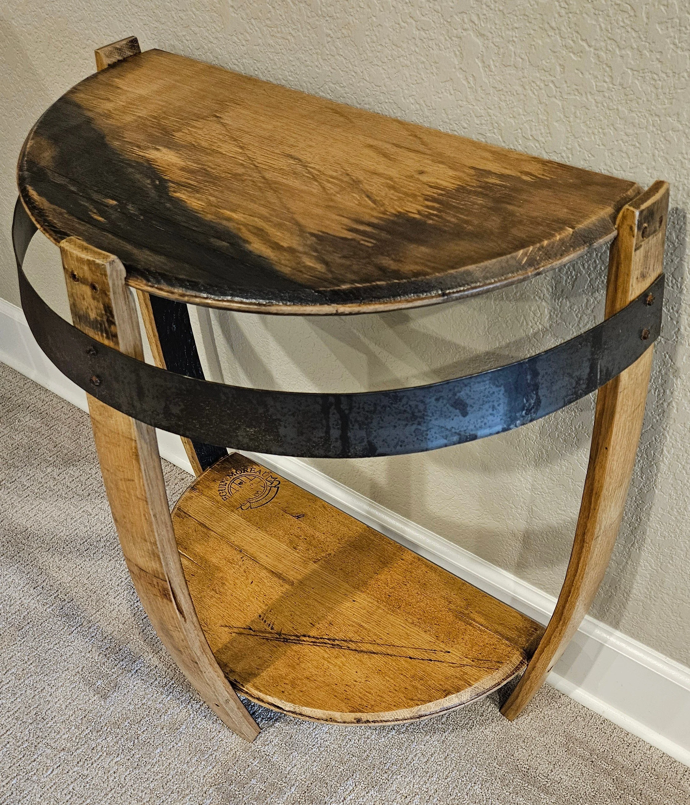 Side tables are expertly handcrafted using bourbon barrel staves, metal ring, and a barrel head, resulting in a distinctive and functional design. They serve as unique accents in casual room settings, offering a versatile surface for lamps, charcuterie boards, drinks, and magazines. Furthermore, these side tables perfectly complement benches and high-top tables, creating a cohesive and harmonious aesthetic. Refer to example photos below.